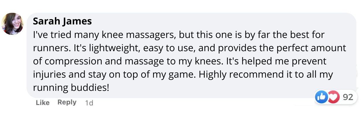 "As a long-distance runner, my knees take a beating. This knee massager has been a game-changer for me. It's helped me recover faster after runs and has reduced the soreness and stiffness in my knees. Highly recommend it to all fellow runners!